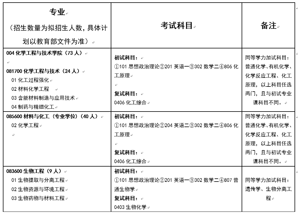 具有化学工程与技术一级学科博士学位和学术硕士学位授予权、生物工程学术硕士学位授予权以及化学工程专业硕士授予权,设有博士后流动站。化学工程与技术学科是山西省1331工程优势特色学科,化学工程是山西省特色学科,应用化学是山西省重点建设学科。