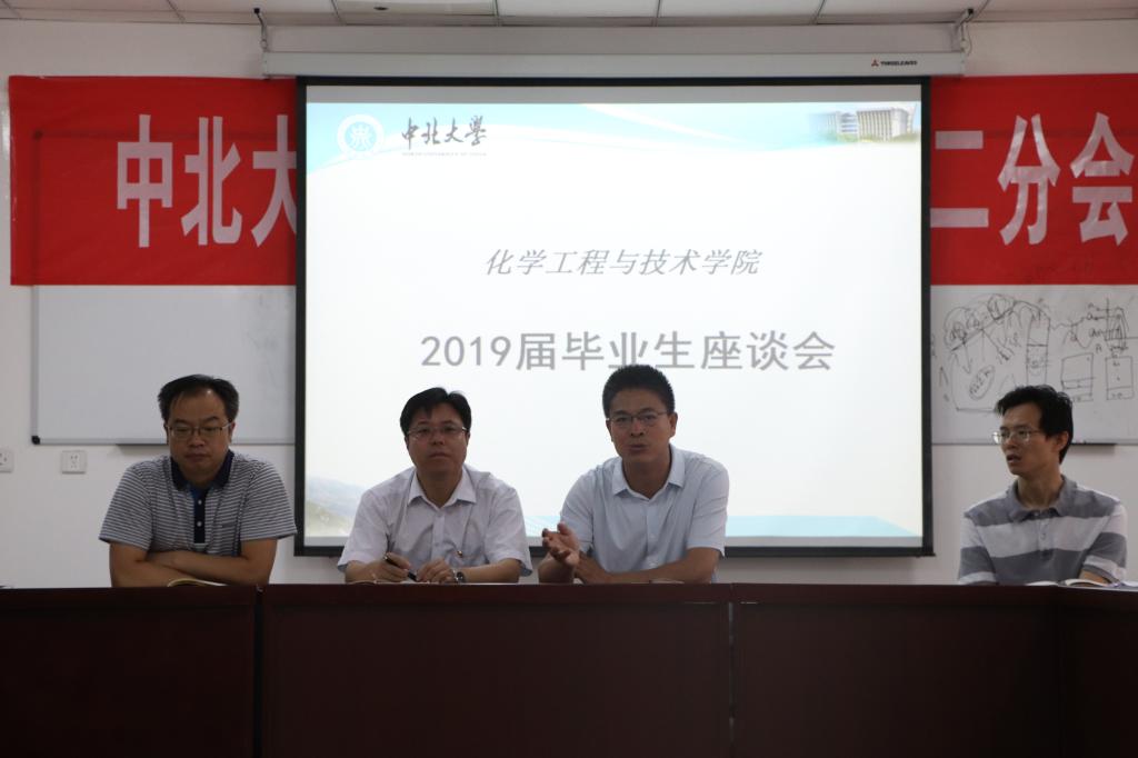 在科学楼206举行了2019届毕业生座谈会。院党委书记廖海洪、院长祁贵生、院党委副书记李云、科研副院长胡志勇、教学副院长王海宾、制药工程专业负责人崔建兰出席本次会议。金沙