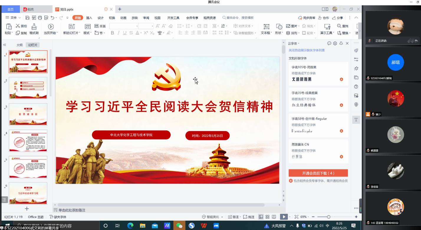 党委组织全体党员通过腾讯会议(会议号:158669328)学习贯彻习近平总书记致首届全民阅读大会贺信精神。