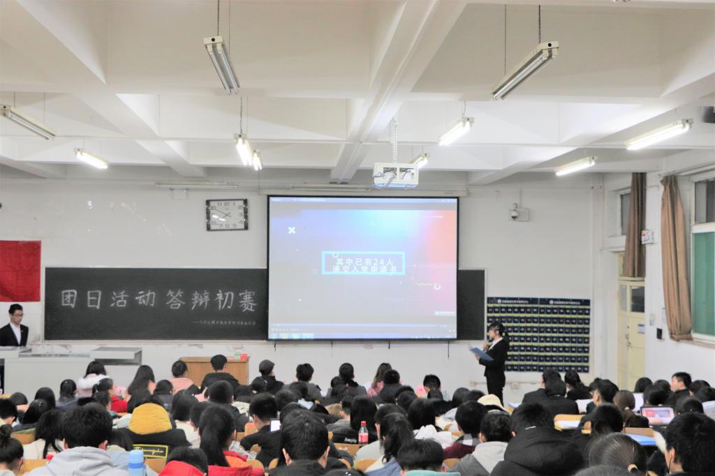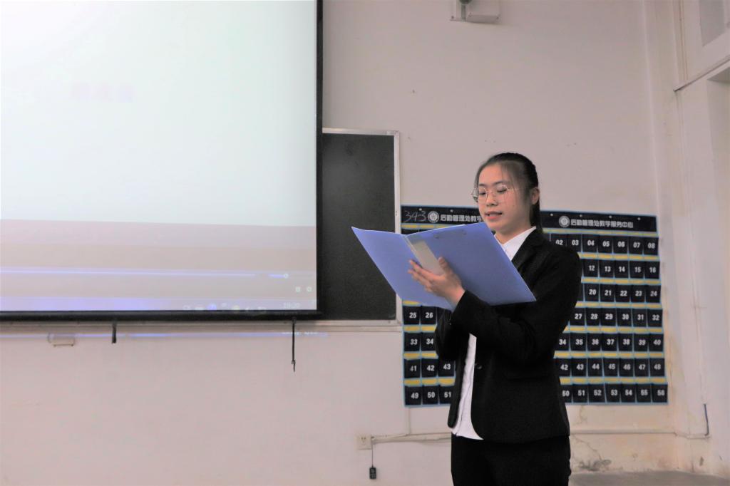 庄严的共青团歌声结束后,答辩正式开始。参与答辩的班级的团日活动各有特色,他们结合图片、视频、录音等方式将各自活动的精彩瞬间展示给观众。19040405团支部成员前往消防支队、交警支队和环保部门进行关于社会建设的调研;19040403团支部成员走进红色纪念馆进行参观学习;18040144团支部成员组织攀登崛围山,体验崛围山红叶文化……从现场的答辩气氛可以看出,每个团支部都用心地组织了团日活动。评委们也从团日活动的组织形式、作用等方面进行了提问与点评。活动最后,范潇丹、龚嘉楠、郭文渊分别对本次活动进行了总结,他们对团支书开展团日活动工作的积极性给予了表扬与肯定,同时也对团日活动中存在的问题提出了建议,希望各班团支书下一次开展的团日活动可以得到更大的提升。