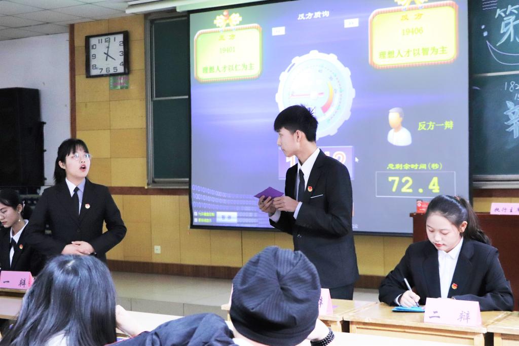 12月7日下午三时,秋颂杯辩论赛决赛在09102H正式开始。经过一个多月的比赛,秋颂杯进入了冠亚之争。正方19040401班代表队和反方19040406班代表队将围绕“理想人才以仁为主还是以智为主”这一辩题展开辩论。本次比赛邀请到的嘉宾有机电工程金沙
