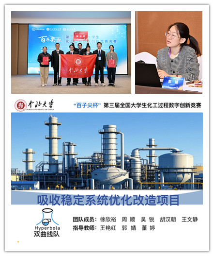 由化学工程与工艺、能源化工专业学生组成的“双曲线”团队(团队成员:徐欣裕、周顺、吴锐、胡汉朝、王文静)以网评第一的优异成绩成功进入全国总决赛,并以总决赛小组赛第一的成绩成功进入总决赛二轮比拼,经过激烈的角逐,最终获得第三届全国大学生化工过程数字创新竞赛全国总决赛特等奖。