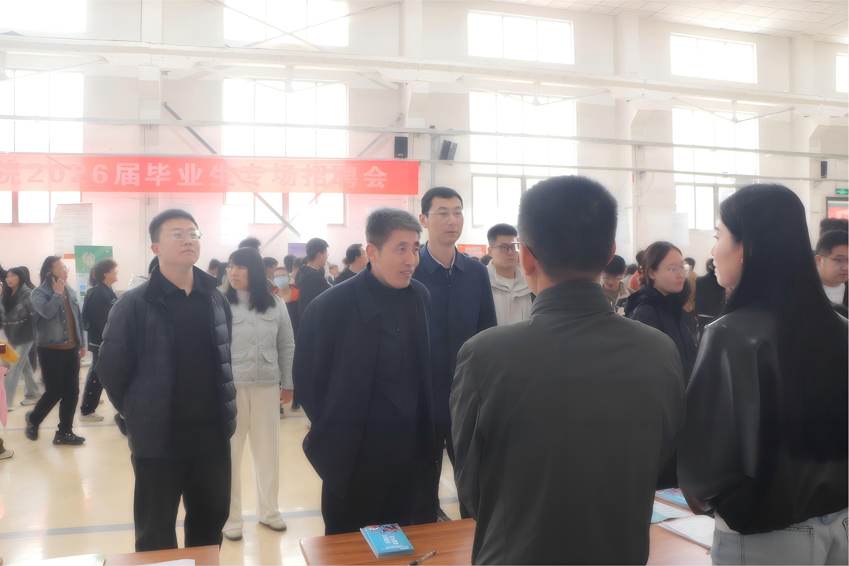 党委书记吴志远、副书记蔡文涛深入招聘会现场,与众多企业开展深入交流,详细了解行业发展趋势、人才需求标准及岗位供给情况,并达成多项合作共识,为拓展毕业生就业市场、深化校企合作奠定了坚实基础。