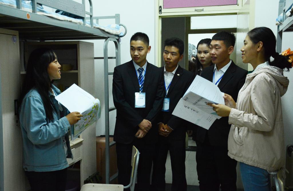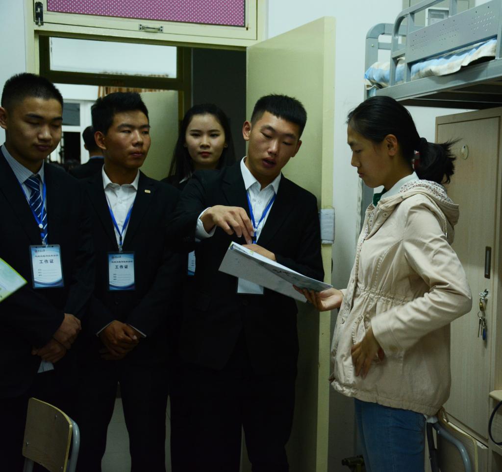 学生干部深入文韬六、七公寓,对2017级新生表达了诚挚的问候和亲切的关怀。