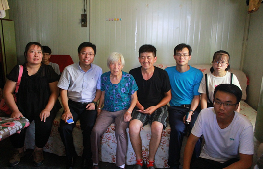 慰问过程中,各位老师亲切而真诚的询问了梁亚红同学的家庭情况,了解了她当前生活中和学习中面来临的种种困难,并对梁亚红同学在学业和个人方面的优秀品质给予了高度的肯定。通过与梁亚红奶奶的交流,我们了解到在梁亚红同学家中母亲早逝,父亲残疾,勉力抚养着家中三个孩子,供他们吃饭穿衣,读书上学。由于农村拆迁,现一家四口仍居住在狭小的活动板房中。