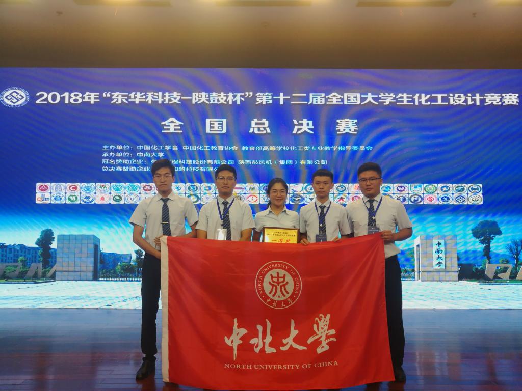 代表队在2018年“东华科技—陕鼓杯”第十二届全国大学生化工设计竞赛总决赛中,经过专项评审、现场答辩等环节,以优异成绩获得全国一等奖。