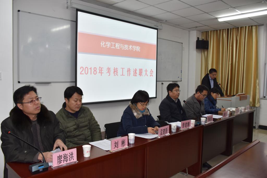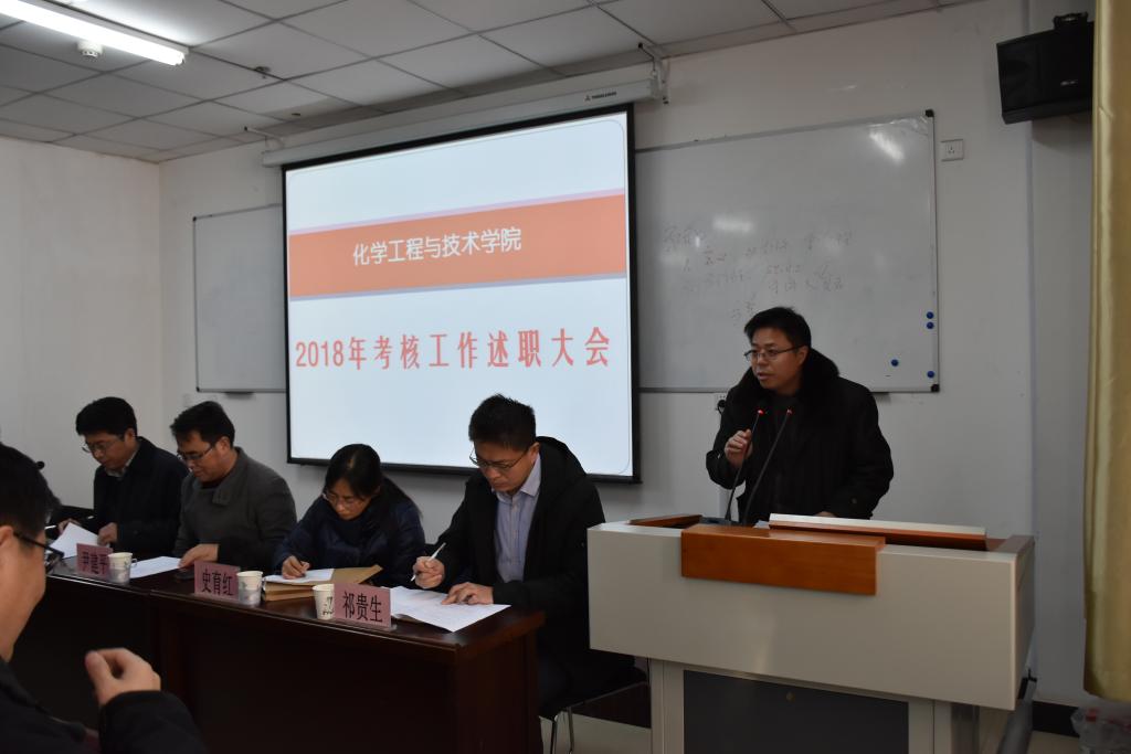在科学楼206召开领导班子及领导干部个人述职述廉会议。由校党委组织部部长贾献忠、审计处处长孟建新、学生处处长尹建平、离退休人员管理处处长刘彬、纪委监察处副处长史育红等人组成的考核组参会,金沙