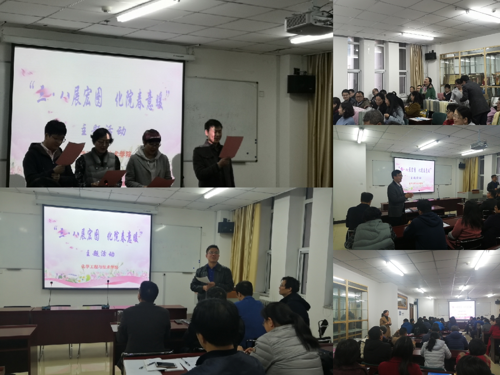 四位教师代表以优美的诗歌朗诵开场,充分表达了对广大女教职工的关爱与祝福。女教师们为人女、为人妻、为人母、为人师,在家庭、工作中都起着重要作用。金沙 领导对女教职工的贡献进行了高度评价,并希望广大女教职工继续以积极向上、充满活力的精神面貌投身到工作、生活中,参与到“改革创新奋发有为”的活动中,共建和谐、创新的化工金沙 。女教工代表、家属代表都进行了热情洋溢的发言。活动中,男老师还通过撰写感谢卡的方式,送出对全院女同事和默默奉献支持自己工作的“另一半”的祝福。