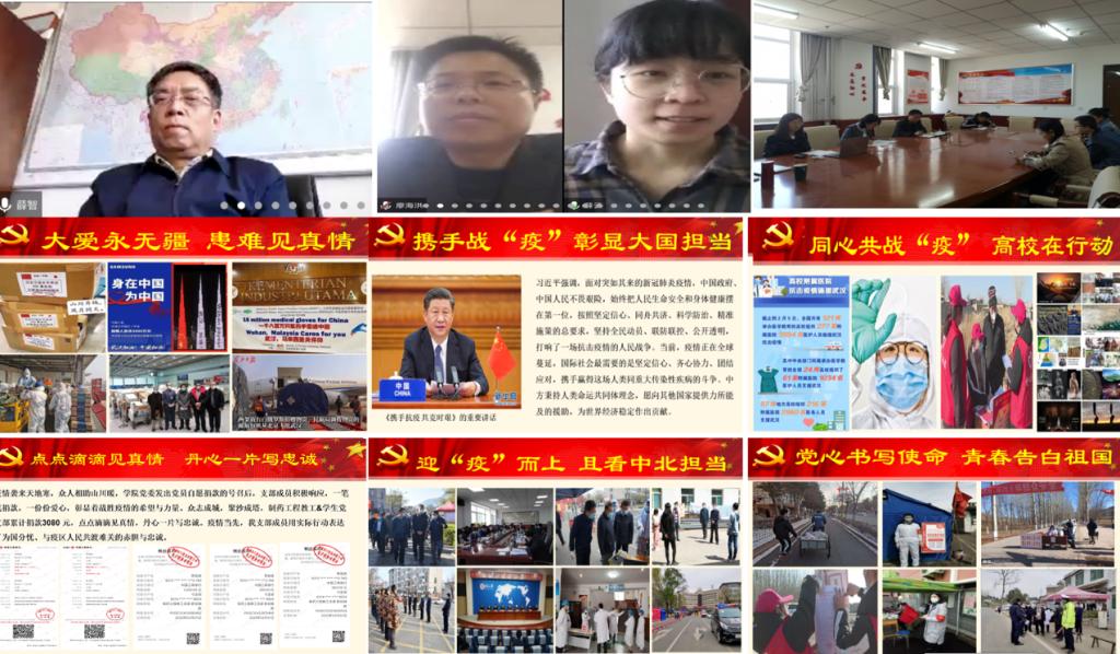 弓亚琼老师带领大家学习了习近平总书记关于应对新型冠状病毒肺炎疫情工作时的讲话等重要内容,秦秀峰老师对疫情期间学生党支部开展的一系列活动做了简要的阐述。直播期间老师、学生以连麦分享、交流、提问等形式积极互动,讲述了中国抗疫故事,学习战“疫”过程中涌现出的先进典型、英雄人物和感人事迹,结合自身岗位工作,交流了疫情防控时期的工作体会与感想。