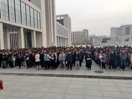 下午四点,科学楼、文韬公寓同时开始消防演练。警报响起的瞬间,同学们迅速有序地从宿舍楼撤离,向科学楼门前空地疏散。集合完毕,各班负责人清点人数。教官陈天麟针对全体师生演练过程进行点评,校医院主任医师孙小林为学生讲解火灾现场的急救知识与心肺复苏人工急救,并邀请学生代表演练。教官陈天麟向大家普及了消防知识,教授了灭火器的使用方法,并让学生代表动手实践,进行了灭火器的使用。最后参与演练的同学有序离场。