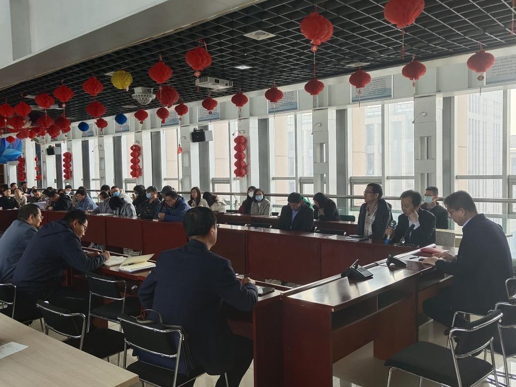 在科学楼C座七层连廊召开全院教职工大会,安排布置近期金沙