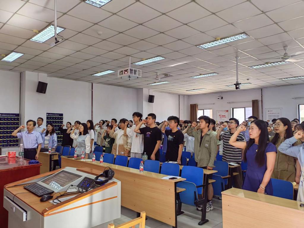 活动伊始,胡志勇副院长带领全体党员重温入党誓词,坚定理想信念、牢记初心使命。全体毕业生党员面向党旗举起右拳,庄严宣誓,声音洪亮,字字入心。