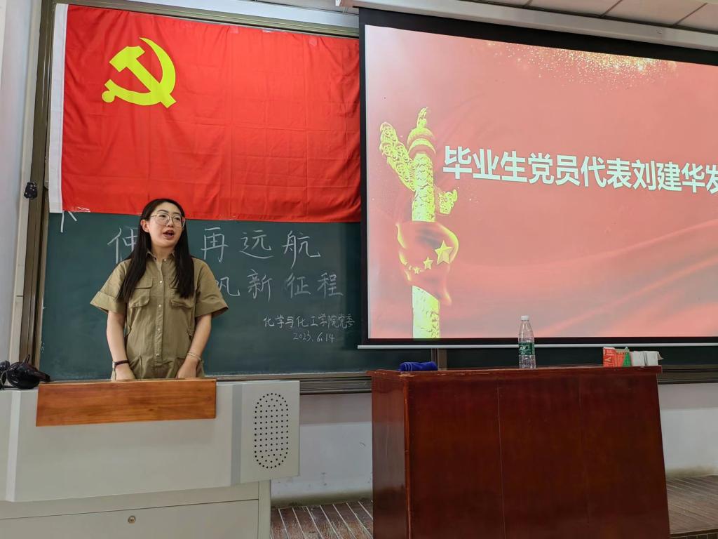 硕士研究生党支部刘建华代表全体毕业生党员发言,感谢三年来金沙