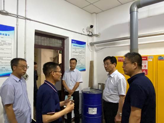 在易制毒(爆)危险化学品库、化学废弃物回收点,来志斌副校长详细询问了化学试剂的采购、领取和废弃物处理流程,他指出,重点场所要加强监督与管理,全面落实人防、物防、技防措施,扎实做好安全防护工作。