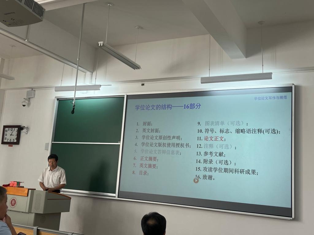 讲座结束后,参会师生们以热烈的掌声表达了对刘老师深刻见解的感谢。祁贵生院长总结发言也提出学位论文质量对学位点合格评估及学科提质增效有重要的影响。通过此次讲座,师生们对研究生学位论文写作规范有了更深入的理解,为他们的学术研究提供了宝贵的指导。