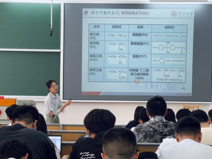 吴帆博士从“长链之谜”到诺贝尔奖殿堂,深入讲解了高分子科学的演进史;从航天器到人工肺深度剖析了跨界应用的工业密码。创新性地运用对比分析与实例结合的方法,系统阐释了各类高分子材料的特性与结构关系;借助精心设计的示意图和模型,将抽象复杂的高分子结构具象化呈现,为同学们构建起理解高分子世界的基础框架。