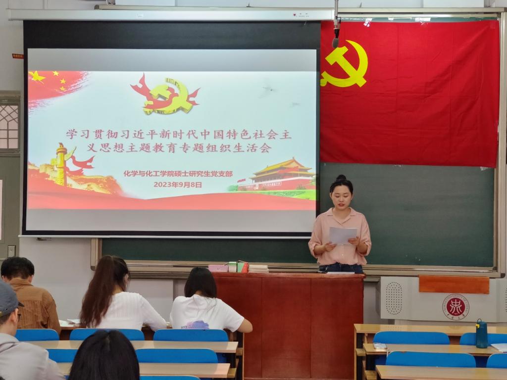 硕士研究生党支部于9月8日下午15:00在11206H召开了学习贯彻习近平新时代中国特色社会主义思想主题教育专题组织生活会。按照本次专题组织生活会的具体要求,与会党员充分运用主题教育学习成果,认真开展了批评与自我批评,检验了主题教育成效。本次会议邀请院党委委员胡志勇老师列席指导,党支部书记贾苗苗老师主持,硕士研究生党支部全体党员参会。