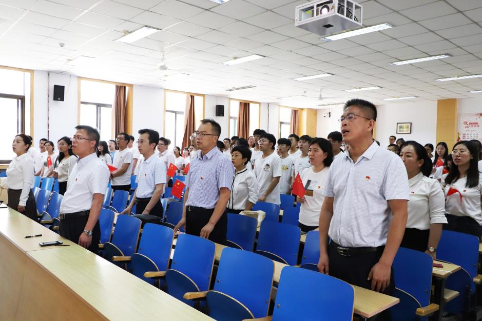 本次活动在嘹亮的国歌声中拉开帷幕,在鲜艳的党旗和党徽的照耀下,院长祁贵生举起右拳,带领全体党员一起庄严宣誓。铮铮誓言鉴我心,党徽熠熠耀党旗。大家以坚定有力的宣誓声,表达不忘初心、砥砺奋进的信念及决心。