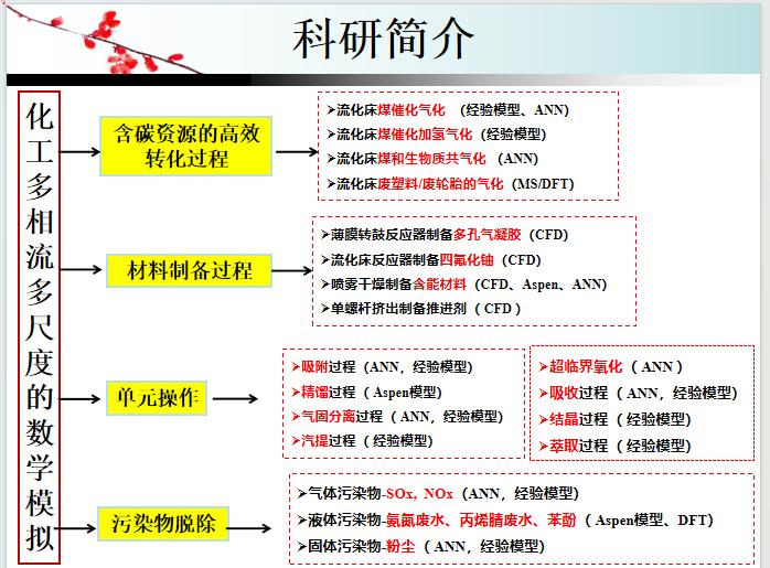 李伟伟1986年生,副教授,博士,博士生导师,《燃料化学学报》和《煤炭转化》学术编辑,研究领域为化工多相流多尺度数学模拟。研究方向如图1所示,主要有(1)含碳资源的高效转化过程模拟;(2)材料制备过程模拟;(3)化工单元操作过程模拟;(4)污染物脱除过程模拟主持或参与科研项目10余项,其中主持省部级项目7项,山西省重点研发项目子课题1项,山西省应用基础研究计划项目2项,山西省高等金沙 科技创新项目2项,省部共建煤基能源清洁高效利用国家重点实验室1项,煤科学与技术省部共建国家重点实验室培育基地开放基金1项。作为项目骨干参与国家基金2项和山西省重点研发计划重点项目1项。主持横向项目1项,参与横向项目3项。以第一作者和通讯作者发表Nature Communications等高水平SCI论文20余篇。担任Energy Conversion and ManagementFuelSeparation and Purification TechnologyChemical Engineering Journal等国际化工、能源和环境领域20多个期刊的审稿人。